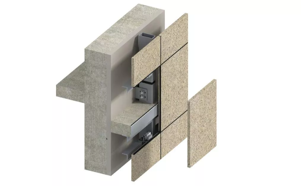 由于現場結構系統無法實現真正意義的水平或垂直布置,一般會出現凸凹不平現象,幕墻的支座系統也只能跟隨結構發生變化,為此支座系統的設計必須考慮其三維可調節性能(如圖15,即支座系統的上下、左右及前后的調節)。如設計出的支座系統未考慮好其三維可調性,則無法滿足現場的施工要求。